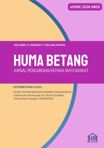 Jurnal HUMA BETANG telah terdaftar di Perpustakaan Nasional Indonesia pada Pusat Bibliografi dan Pengolahan Bahan Perpustakaan, Pusat Nasional ISSN Indonesia dengan SK Nomor: 31244823/II.7.4/SK.ISSN/04/2026